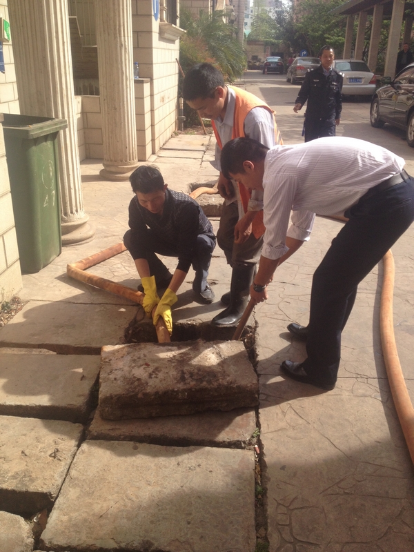 技術(shù)支持: 方森科技 2013年3月25日下午,物管公司組織工作人員對南疆花園小區(qū)內(nèi)堵塞的下水管道進(jìn)行了疏通。工作人員利用鏟子等工具對固狀體的污物進(jìn)行了清掏處理,實在無法弄出來的就用雙手去摳,在炎熱的天氣下氣味非常刺鼻,工作人員經(jīng)過近4個小時,清理了堵塞的下水管近50米,確保了小區(qū)環(huán)境的整潔、干凈,保證小區(qū)住戶的舒適、安寧,努力建設(shè)美麗、和諧家園。