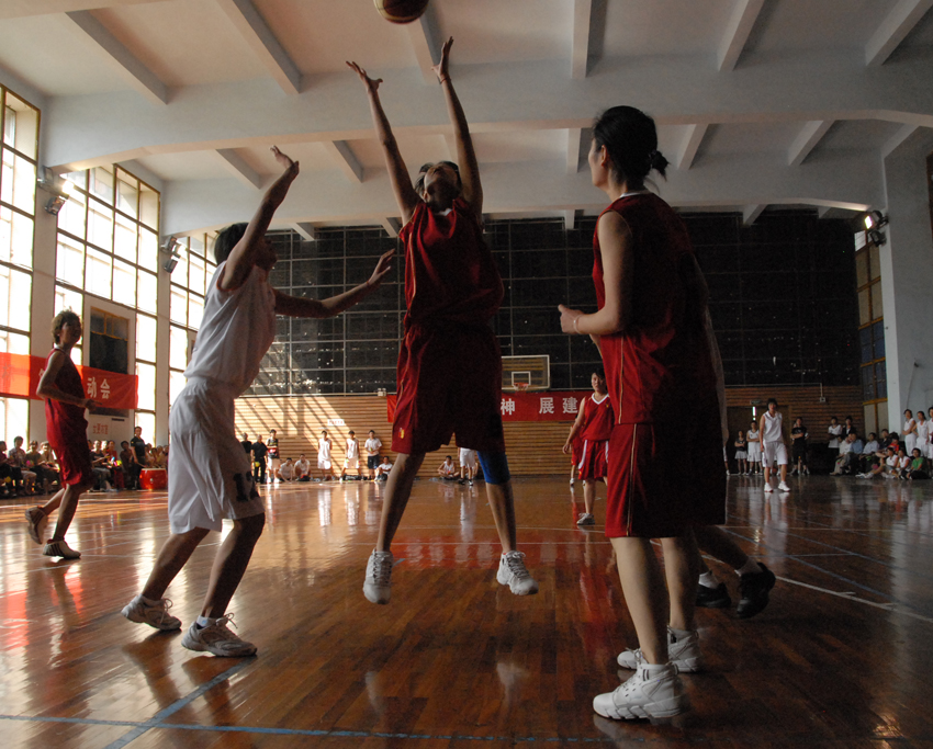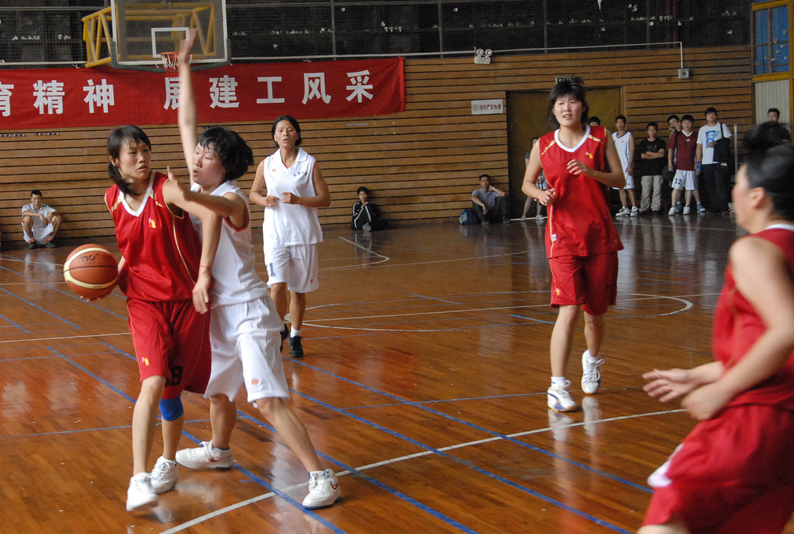 建工杯籃球比賽掠影三 6月19日,女籃,五公司對四公司隊。這是對抗十分激烈的一場比賽,在絕大部分時間里,比分都是以一、二分之差及平局交替變換增長。最后的冠亞軍決賽也是在這兩個隊之間進行。 高玉和 攝影