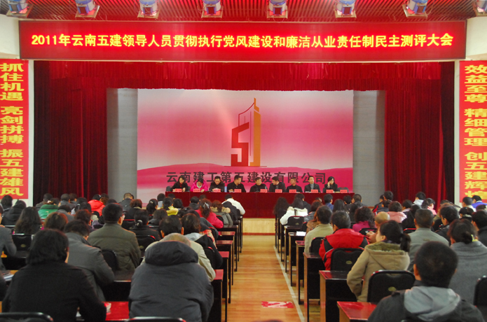 12月2日下午2時(shí),為認(rèn)真貫徹執(zhí)行黨風(fēng)建設(shè),加強(qiáng)群眾監(jiān)督,公司在大禮堂召開(kāi)了2011年云南五建黨政領(lǐng)導(dǎo)班子成員貫徹執(zhí)行黨風(fēng)建設(shè)和領(lǐng)導(dǎo)人員廉潔從業(yè)責(zé)任制民主測(cè)評(píng)大會(huì),開(kāi)展民主測(cè)評(píng)活動(dòng)。公司董事長(zhǎng)楊福和出席會(huì)議并發(fā)言。公司領(lǐng)導(dǎo)班子成員及機(jī)關(guān)支部所屬員工200余人參加。 會(huì)上,對(duì)公司14位黨政領(lǐng)導(dǎo)班子成員進(jìn)行了公開(kāi)的民主測(cè)評(píng)。測(cè)評(píng)由紀(jì)委副書(shū)記吳倩主持并宣...